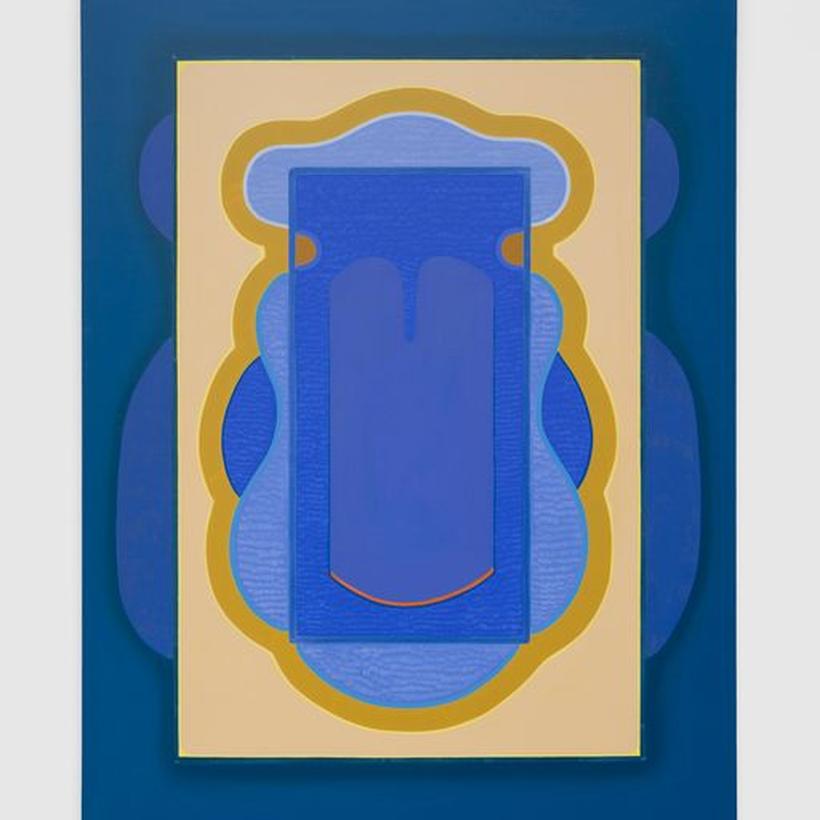 Drawing from nature and its grammar of symmetry, camouflage, and repetition, Stockman plumbs her familiar landscapes (Los Angeles, the Mojave Desert, a remote island in Maine) for her distinctive palette of glowing, tertiary colours– crackling orange, red earth, Holbein brown, and Fra Angelico blue. In a review of Stockman’s most recent exhibition, The New Yorker art critic Johanna Fateman describes the artist’s biomorphic compositions as “both diagrammatic and vaporous, a combination that calls to mind the spiritualist abstractions of the American modernist Agnes Pelton. Although they’re more lyrical, Stockman’s nested shapes also have the meticulous magic of Josef Albers’s squares.” Stockman’s paintings emerge from a wide range of references, from the prosaic — seed catalogues, topographic maps, birdsong, skating on a frozen pond –– to the archaic — Shaker gift drawings, mediaeval hocketing, portable Renaissance altarpieces, poetry metre.