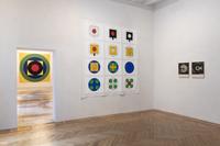 In Centered, Mullican presents a new series of watercolors on wood alongside square canvases, all of which are made through the technique of rubbing - the most ancient technique for the production and reproduction of a work of art. Also on display is a quintessential colored banner and two new productions.